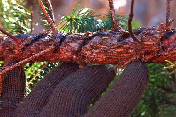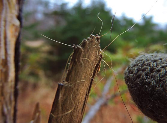 - Young conifers that have been bent over and broken by bears are easily recognized. Claw scars show on the tops of trees that were grasped and pushed down, and hairs will still be found, jammed within the splintered wood. This occurs when the bear (usually a female) straddles the broken tree and rubs it. If she is seeking a breeding partner, her urine and pre-estrus scents will be posted on the foliage of the spruce or fir she has mounted.