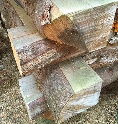 The answer was to use D-logs, sawn on three sides, with the exterior side of the log retaining its natural curvature. The primary benefit of this pre-processed building material is that it allows you to build a log structure by simply stacking the logs – no coping, no fussing. While it may not represent the same sort of craftsmanship that hand-coping does, it takes about one-fifth the time to complete a building.