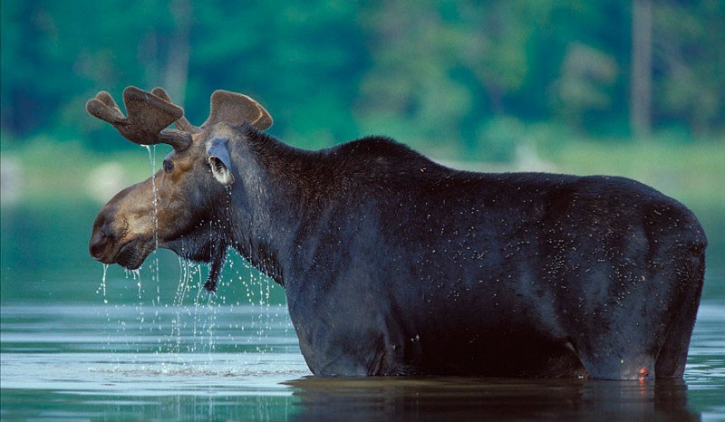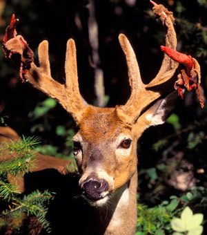 Why do bull moose and buck deer thrash bushes and small saplings when the velvet dries? Is it to rid themselves of an itching sensation? It could be, but most scientists, including cervid antler authority George Bubenik, believe that rubbing is largely a behavioral response to increasing testosterone, which stimulates the animal’s preoccupation with scent marking and his sexuality. I recently watched a buck engaged in “rub out” removal of velvet, and my observations support Bubenik’s hypothesis. The buck was at first casually rubbing his forehead and face on small overhanging hawthorn limbs, when suddenly, his blood-perfused velvet tore on a thorn and bloody rivulets ran down his face to his nose. This didn’t stop him, however, as he licked his nose and commenced to rubbing more and more vigorously. Occasionally, he used his face to press a dangling strip of velvet to a limb where he could grab it with his lips and eat it. It was over in less than two hours, and the hawthorn and a nearby small spruce were the worse for wear. Strips of velvet hung like dark red party streamers on the limbs he’d been rubbing. If I had to describe what motivated him most, I would say that both scent-marking and scent-checking were his primary purposes.