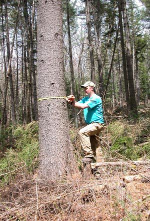 Today, you have a choice of tools to use when measuring diameters. There are calipers, Biltmore sticks, and calibrated diameter tapes. It’s also possible to measure the circumference (wrap a tape tightly around the tree at 4.5 feet) and divide by pi (3.14 is close enough) to get diameter. Because tree stems are seldom perfect circles in cross-section, diameter tapes give the most accurate measures of diameter. They give the average of all possible measures and, therefore, are preferable for eccentric stems. By contrast, the Biltmore stick – while fast and easy – is the least accurate. But at least you’re carrying a big stick.