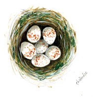 The diversity of behavior among bird species is nowhere so dramatic as in their nest construction. Each species builds a specifically precise nest that differs in functional ways from those of almost all others. The variations are as endlessly diverse as the color patterns on a feather. Chimney swifts use their saliva to glue dry twigs onto vertical walls in a chimney cavity or hollow tree. A masked weaver bird’s nest is a finely woven bag with a long, vertical entrance tunnel that is hung from the tip of a thin branch, whereas a sociable weaver builds a communal structure that may weigh a ton. An eagle’s massive structure of branches can support a large man, while a plover merely scratches a few pebbles together on a sandbar. Owls never build anything at all but use others’ nests or nest holes. A murre lays its single egg on a sea ledge, and a fairy tern “nest” is a bare fork on a tree limb.