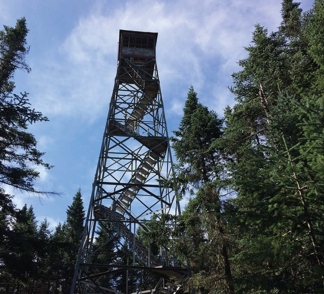 According to Ginger Anderson, former forestry district manager for Vermont Forests, Parks & Recreation, fire towers were introduced to wilderness areas in the Northeast during the late 1800s. Usually they were built, manned, and maintained by private logging companies and sportsmen clubs. Devastating forest fires in the region raged in 1903, destroying more than 5,000 acres of Vermont’s forestland, and in 1908 more than 100 individual forest fires scorched nearly 16,000 acres in the state. Shortly after, Vermont established the state Division of Forestry and appointed its first state forester. Organized efforts to prevent forest fires at this time included planting tree seedlings, clearing fallen limbs and trees, erecting fire towers, and assembling forest fire–fighting crews.