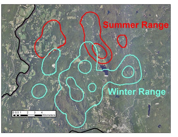 “One of the things that surprised me about the data is that the cats seem to tolerate far more roads than you might expect,” said Litvaitis. While the outer boundaries of some cats’ core areas seemed to be defined by roads, others seemed far more tolerant of roads and human presence. One cat with a home range north of Marlborough seemed to think nothing of crossing Route 9. (While we’re talking about ambitious crossings, one cat crossed the Connecticut River and spent the summer in Vermont, which certainly puts a new spin on the idea that cats hate water.)