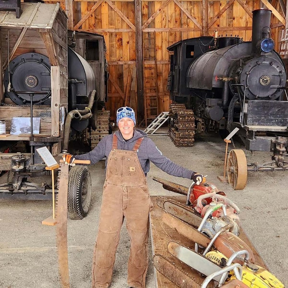 The Maine Forest and Logging Museum contacted me in 2017 and asked if Axe Women wanted to do demonstrations there during the summer. It’s such a cool place, and only an hour away, but I hadn’t been there. It’s 500 acres, just a few minutes outside of Bangor. There are working sawmills powered by waterwheels, so there’s a millpond. There’s a beautiful stream running through it, and a blacksmith shop. There are two operational Lombards – a train engine that runs on caterpillar tracks and used to pull loads of logs out of the woods. They were made here in Maine. We fell in love with the place, and then we were invited to be on the board. A lot of our time, when we’re not in Axe Women world, we’re in museum world and thinking about what we can do to get more people going and to get the word out about it.