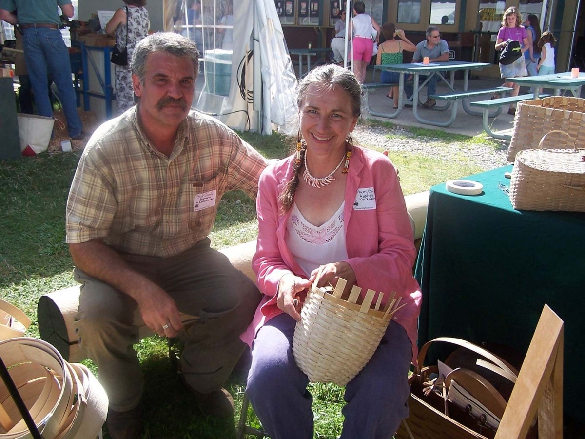 In the latter part of the ’90s, I got away from the logging for a year or two and started sawing lumber. I got tied in with Peterboro Basket Company. I would saw ash for them. That sort of perked my interest in basket making. My wife’s family were basket makers in Vermont. One of her relatives was one of the first basket weavers at Peterboro Basket when they opened. So my wife, Sherry, had an interest. She did a basket apprenticeship with Jeanne Brink up in Vermont. She was making the fancy baskets, the more delicate decorative baskets. They have sweetgrass in them and different curls and stuff.