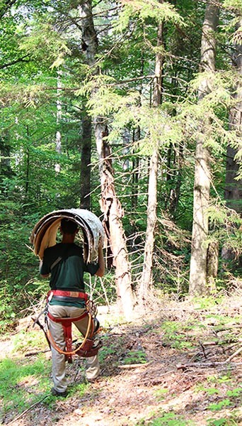 The crews expect to peel about 20 percent of the trees in a stand, but on good sites the bark comes easy and they peel more. Payouts to landowners this year have been between $200 and $2,000 – that big number coming on a smashing 2- to 3-acre site where they peeled around 600 sheets. Stripping the bark kills the tree, so the work is done in conjunction with a timber harvest on trees that were going to be cut within a year.