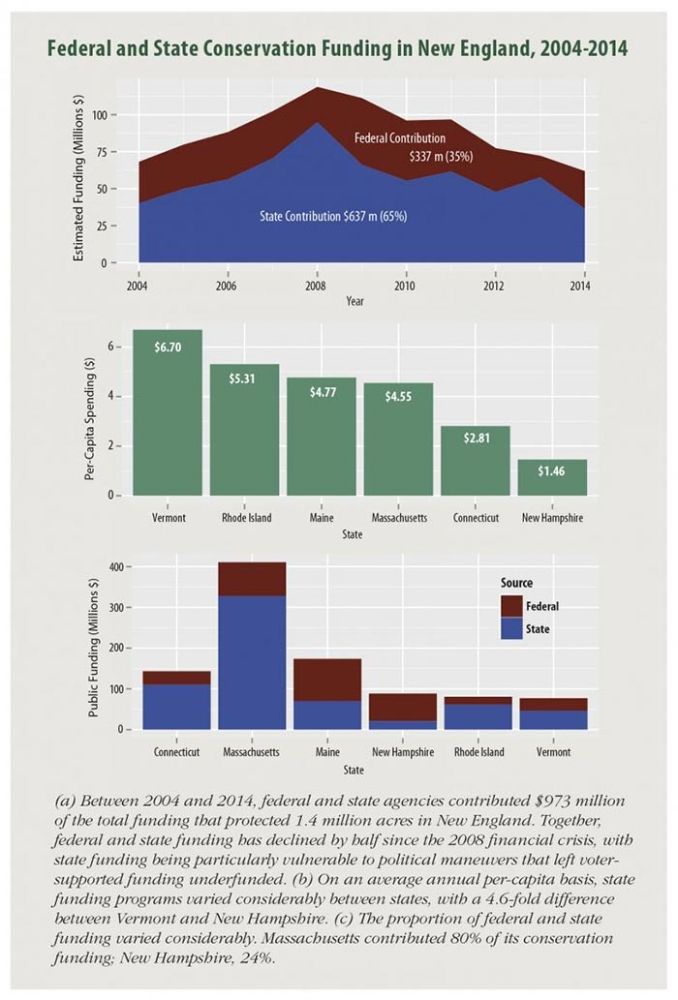 Harvard Forest released a report last week that’s been grabbing headlines – you can read it here. The big news is that between 1990 and 2010, New England lost 24,000 acres of forest each year to development. Paralleling this, the pace of land conservation slowed from about 150,000 acres a year in the early 2000s to about 50,000 acres a year since 2014.