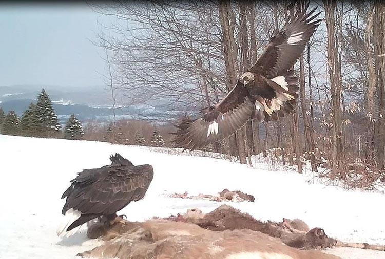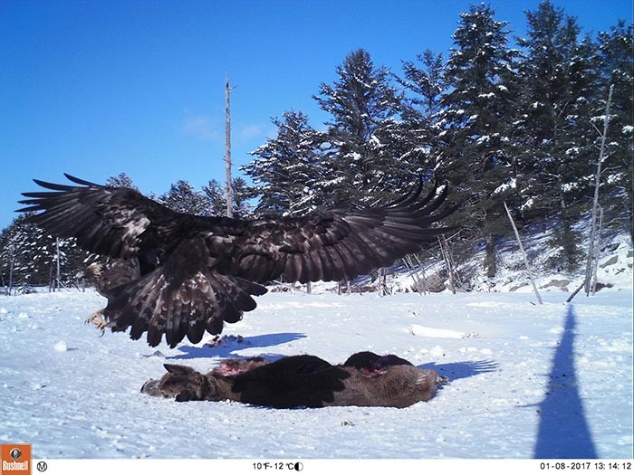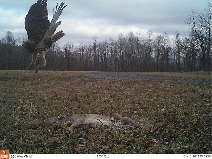 In their early days, game cameras were marketed mostly to hunters looking to get a leg up in understanding the population of specific game species in their favorite (or secret) hunting areas. Landowners quickly took to the technology as a way to get a sneak peek on what’s really living out in or trespassing on their own woods. And it didn’t take long for scientists to catch on to the power of game cameras in conducting all sorts of wildlife-related research, not just on particular parcels but sometimes on a much larger landscape level. One example of the latter is the scavenger-related research being done by Todd Katzner of the U.S. Geological Survey’s Forest and Rangeland Ecosystem Science Center.