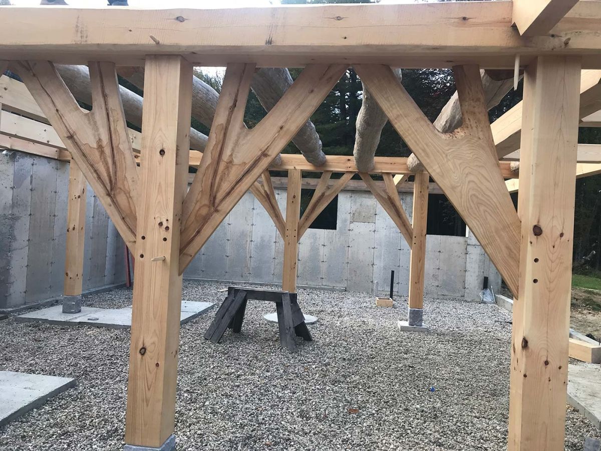 I love this work. It’s so much fun. I just slowly got into it. It was kind of just by chance. I’ve built just about everything – houses, barns, outdoor pavilions, decks. I’ve rebuilt barns. I’ve taken down old structures and put them back up as houses. I also teach workshops, including some for the Heartwood School. They have a series of programs for timber framing and other subjects. They have a carpentry for women class. They do things like concrete countertops, a stairway building class. It’s a nice school and is actually part of the Timber Framers Guild now.