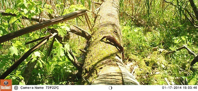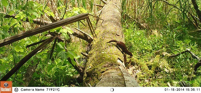 Then a few weeks back I collected a game camera that I had set up over a log at the edge of a swamp, and noticed that in three out of the four days it was out there, it captured an image of a mink. Each day contained only one mink picture. Each day the mink was going north to south while carrying food in its mouth (an anuran and two rodents, respectively). The date was not properly set up on the camera, but it was keeping time and indicated that all three pictures were taken within 40 minutes of each other, right around 7 o’clock in the evening. It all seemed suspiciously like dinner time – so regular you could set a radio program to it.