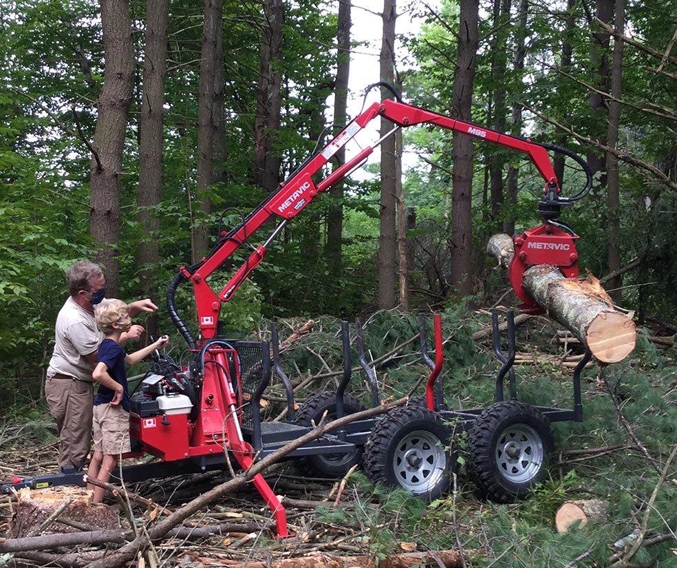 I am an inveterate “gadget hound.” This ranges from trying out just about every hand tool known to man for handling firewood logs to setting up my compact tractor for work in the woods with a belly pan, limb risers, forestry grapple, and logging winch. Several years ago, I found a log forwarding trailer with hydraulic grapple in like-new condition. It’s too small for anyone to use commercially, and usually too expensive for a landowner to justify for “hobby” use, but when it came up used at a good price, I jumped on it. If I ever did the math, I probably still could not financially justify it, but it has given me a lot more options for working in the woods and has probably saved me a few trips to the chiropractor. It has also come in handy when someone has a tree down and wants to donate it to the Monkton Wood Bank.