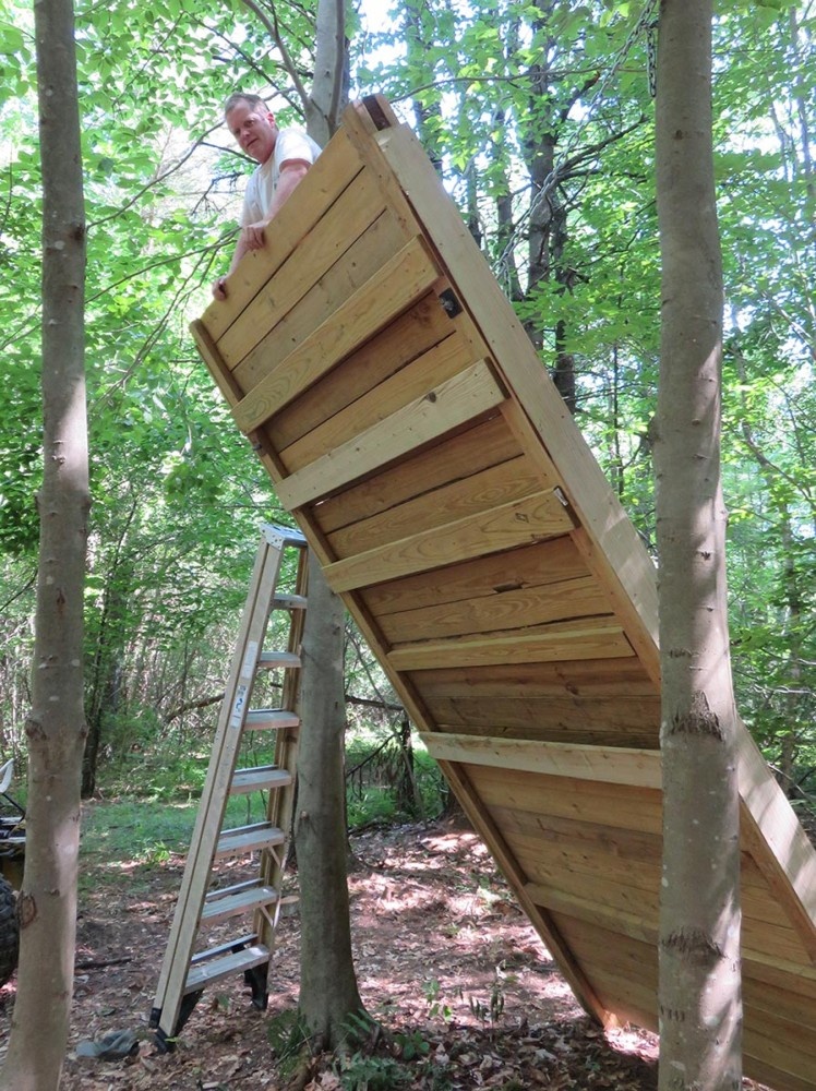 We have 82 acres, almost all forested, that we bought in 2002. Two years ago we bought a parcel to the north of us, so now we have 144 acres and have safeguarded our neighborhood trail network. We have a few trails, some of them resurrected from old logging trails and some we put in ourselves. My wife used to run Tough Mudders and Spartan races, so we built a few obstacles along our trails in the woods, and that was her training ground. Our trails connect with others on adjacent properties, and it’s kind of become a neighborhood network.