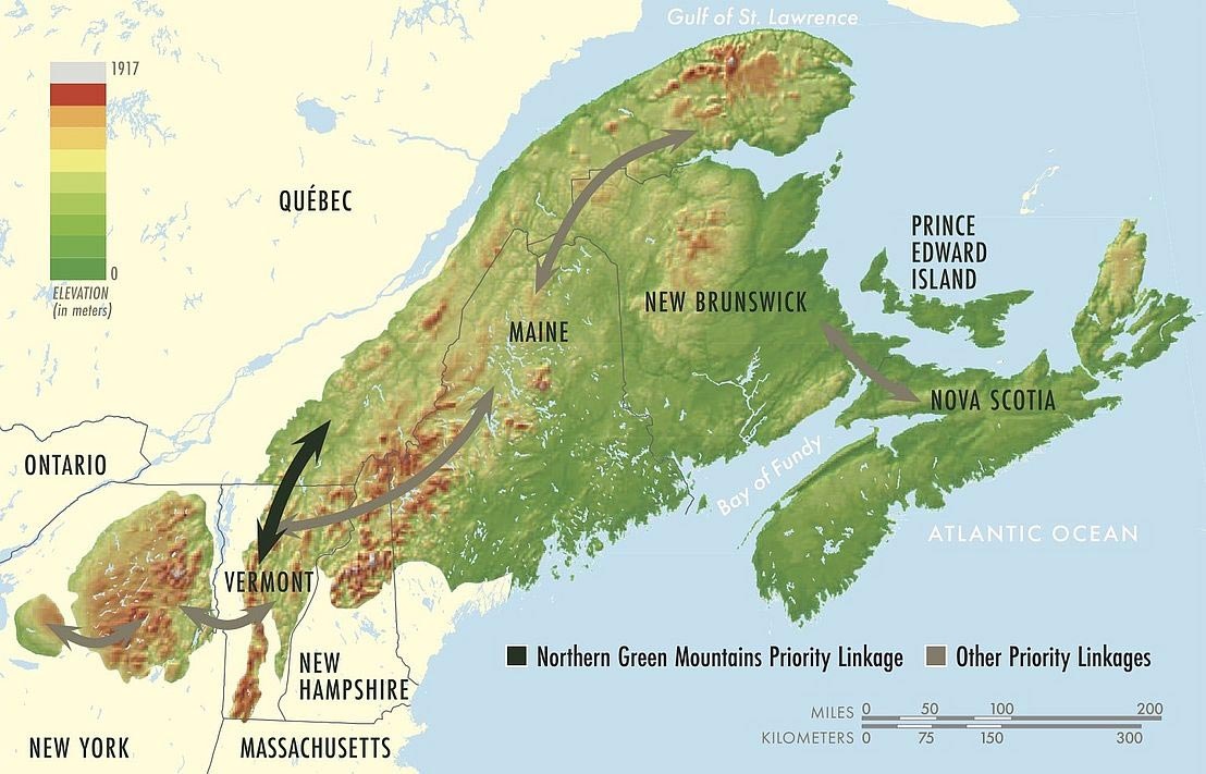 I’ve been working with an initiative called Future Forests Reimagined, which is bringing people together to collaborate. I have been on the board of Two Countries, One Forest for about 10 years. That organization, along with the Wildlands Network, started the Future Forests Reimagined project. It’s a bioregional project that includes the northern Appalachian-Acadian-Wabanaki region, which goes from the Tug Hill Plateau to the tip of Cape Breton – four states, three provinces. This forest is a globally significant forest. The most intact broad-leaved temperate forest in the world. It is important to keep this forest intact and connected. Several areas of connectivity have been identified across this bioregion. One of those linkages is the northern Green Mountains, where I have lived most of my life and where my day to day work is focused.