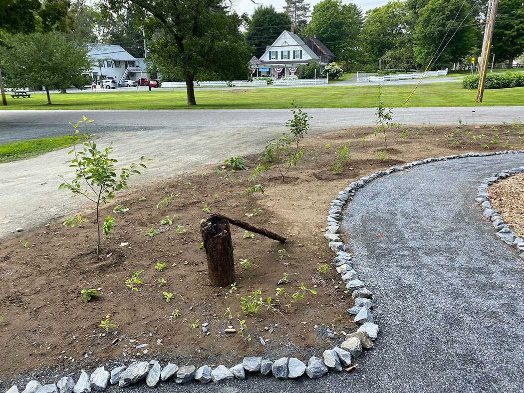 Our native plant pollinator garden has been fully planted and mulched. Just a few tasks remain for the season, including addressing some storm water drainage issues. Many hands have come together to build our garden of dreams, and we are so delighted. We welcome you to come take a walk!