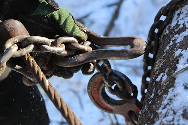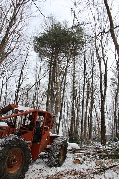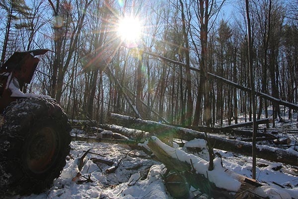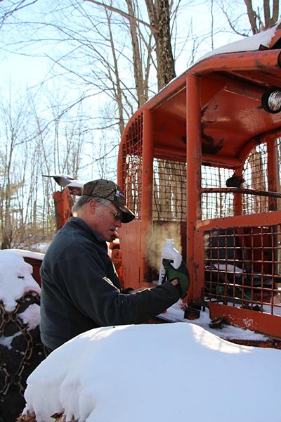 Dad and I have been logging the past few weekends, and I particularly enjoyed last Saturday morning for the deep cold. Temperatures were around -10 as we headed out to the job, and just about everything was noisy. Even the harsh light was noisy. We fortified ourselves with hot coffee and then fortified the old Timberjack with an anti-coagulant and some ether mist. It roared to life, then sputtered for about 15 minutes before it started to breathe easy.