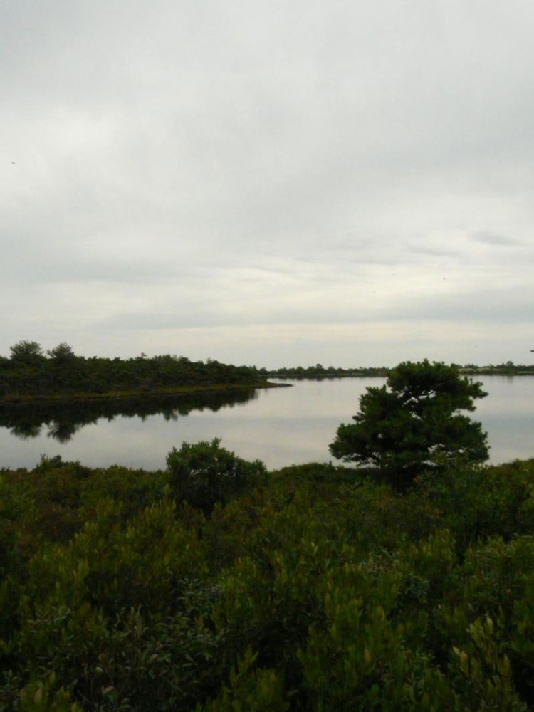 A sediment core from a ridge-top swamp shows a dramatic increase in mountain fire beginning around 400 A.D., which indicates that the local Indians probably started the practice of controlled burn. As a result, the tree mix features a lot of chestnut oak and the understory is full of fire-tolerant plants. The ridge-top forest near Sam’s Point is a globally rare dwarf pitch pine barren; pitch pine has serotinous cones, many of which won’t open unless they’re burned.