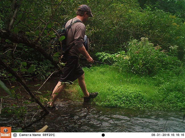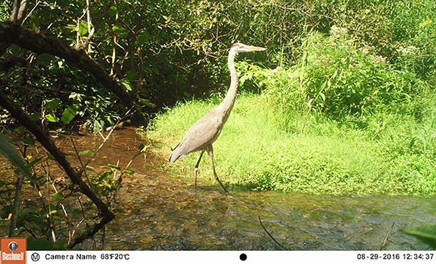 Consider this series from late August 2016. A blue heron – nice, but lacks context. A young raccoon – pretty cute, for sure, but a raccoon in a stream does not present an obvious teachable moment. A human fisherman striding through the frame three hours after the raccoon was fishing on the same gravel bar – cool, but to be really compelling the two would have needed to be there fishing together.