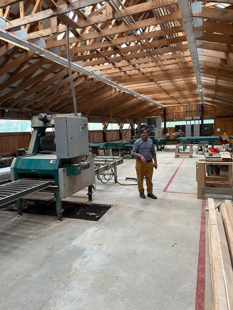 While I was there, the UVM Rubenstein School was in the process of redoing The George D. Aiken Center, and as a part of that project, the building committee and faculty involved the students in sourcing wood. Wood from the Jericho Research Forest was incorporated into the green renovation of the building. In forestry school, a simplified task progression is to learn about growing trees and then go out into the woods and mark trees for a prescription, then work with the logger to get trees to the landing, and bye-bye tree. Then you start working on growing the next tree. But with this project, I got to follow the story through the processing. That was eye-opening, to see all these people who were involved in making that tree into a piece of the Aiken Center. There are a lot of fascinating stories about the people, about the history of them working with the wood, every step of the supply chain. I got to ride along and meet them. That sent me down this path of working with wood and helping people who work with wood.