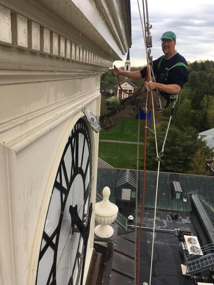 Lisa: Our small company worked on church steeples and towers all over New England, mostly in Maine and New Hampshire. It was a really hard job, but it was pretty interesting. Of course, I got sucked right in. I found that I had these skills with woodworking and painting from my boatbuilding work, and I just kept doing it. I really liked it, although it was a little terrifying at times to be hanging off a steeple.