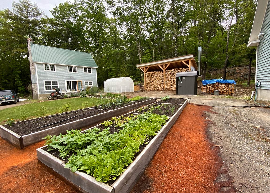 Lisa: Everything that we have for work – it’s very functional. We have an outside wood boiler that heats all our buildings, so we have to process that wood every year. We have solar panels on the roof of the shop. I grow a ton of vegetables. We have a greenhouse and a hoop house and all these raised beds. We could probably just go to the store and buy the food or heat the house with oil, but we choose not to do that. We’re trying to live as much off the grid as we can.