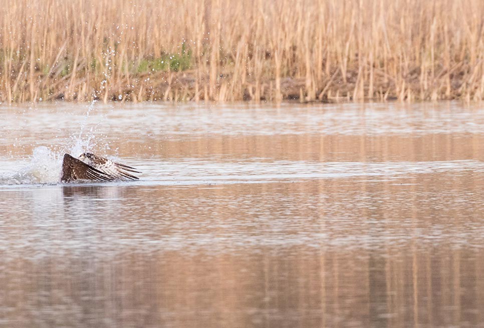Anyway, eagles and osprey are now both sufficiently common in this little corner of the Chesapeake watershed that, for the most part, they fly by without comment. Except that, this visit, my husband happened to have his camera out at just the right time when an osprey was fishing. Unlike other raptors, osprey plunge headfirst into the water, with their talons extended on either side of their head. Even when you witness this, it seems wildly improbable, as David Deen aptly described in this 2010 Outside Story article.