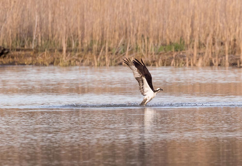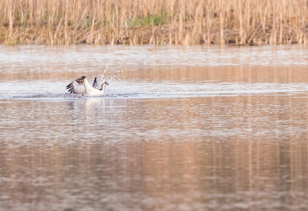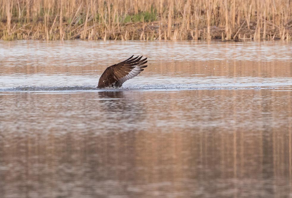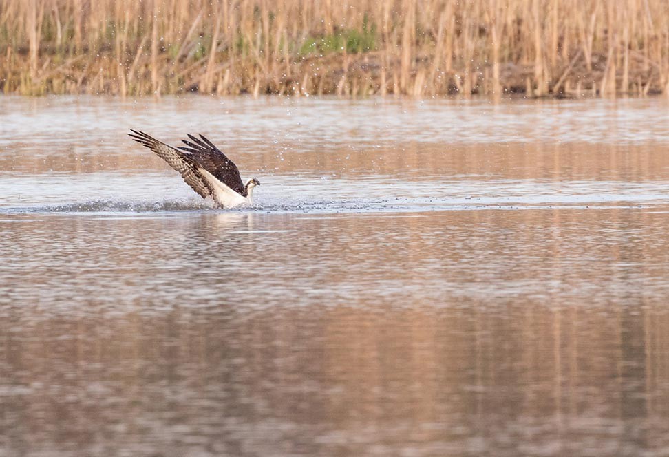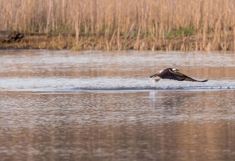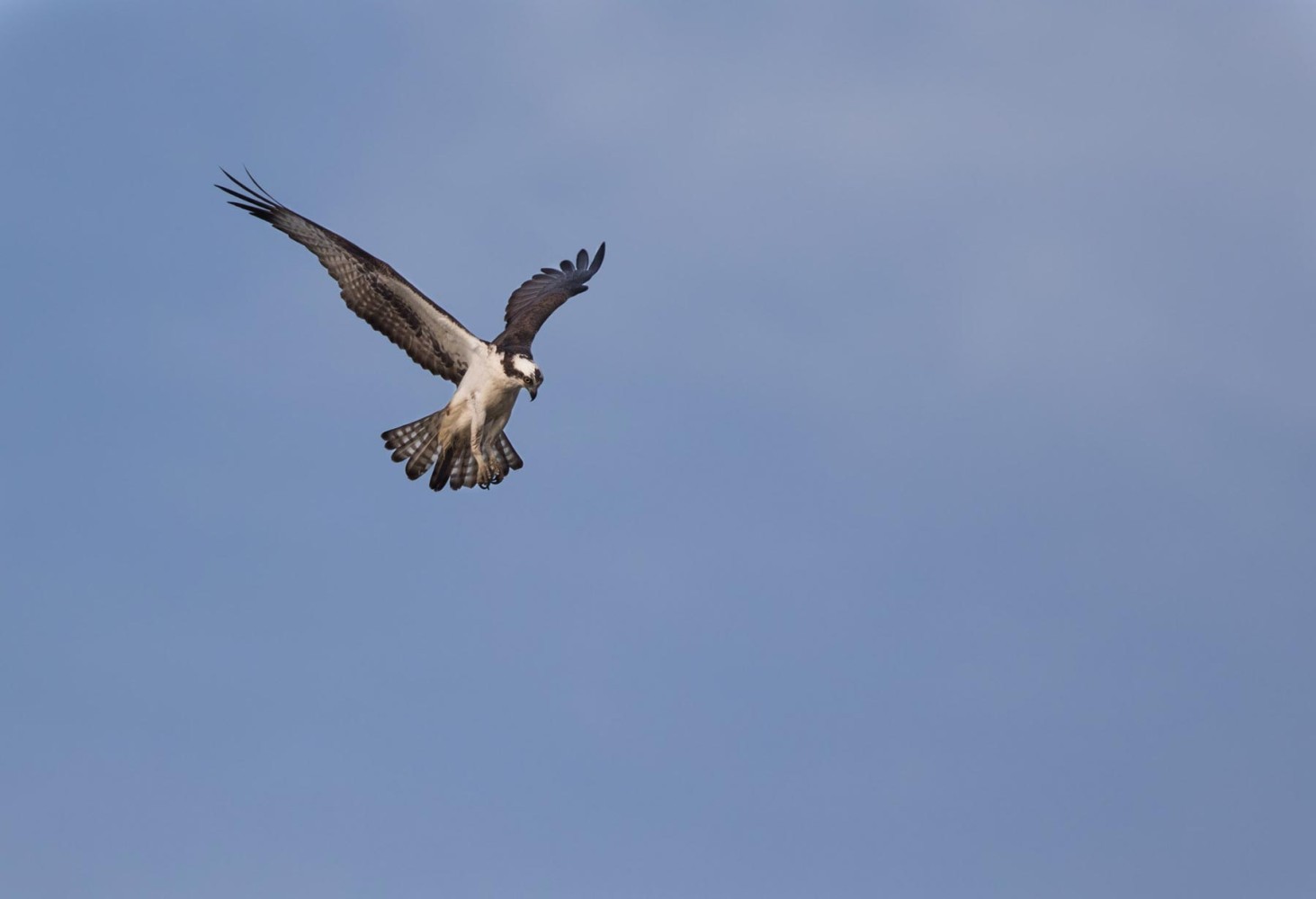 Below are images of the full sequence of an osprey dive, from first descent to its recovery out of the water (in this case, the fish got away). The time from the beginning of the dive to the bird becoming airborne again was approximately .7 seconds. You’ll also see an image of the same osprey hovering as it scans for fish, and an image of a skeptical-looking osprey that I just couldn’t resist throwing in.