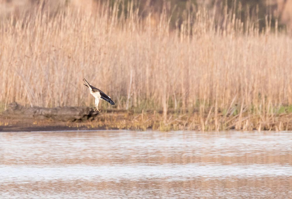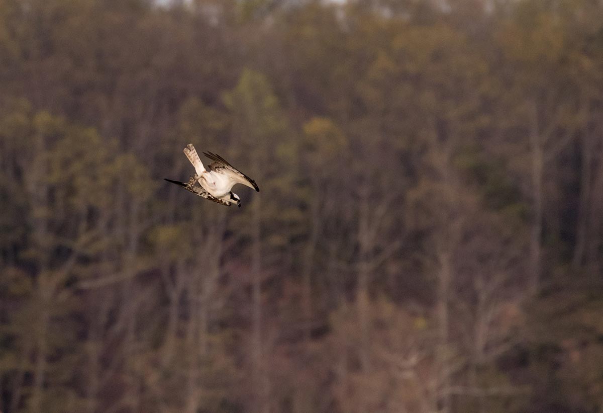 Not pictured, but an increasingly common part of an osprey’s fishing routine, is the harassment stage, when it (and sometimes its mate) may perform both evasive and aggressive maneuvers to ward off a bullying eagle. Sometimes the osprey wins. Sometimes the eagle wins. Sometimes the fish gets lost in the scuffle and lands with a thud on the lawn, inspiring barking, joy, and fish breath, in my parents’ flat-coated retrievers.