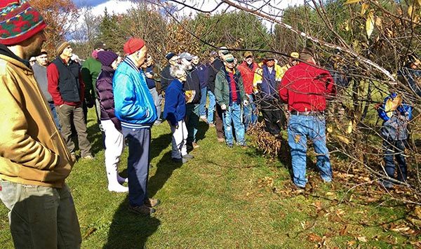 Earlier this month, about forty people gathered at New Hampshire’s Shieling Forest on a misty morning for a landowner workshop titled “American Chestnut Orchards on Private Land.” The event was organized by the New Hampshire Timberland Owners Association (NHTOA) and co-sponsored by TACF, Northern Woodlands, and the New Hampshire Division of Forests and Lands. It opened with a presentation by TACF’s New England Regional Science Coordinator, Kendra Collins, and continued with tours of two restoration orchards led by A.J. Dupere, a forester with the state’s Urban and Community Forestry program.