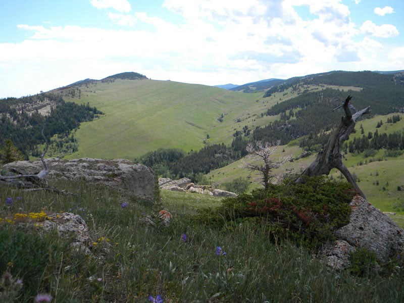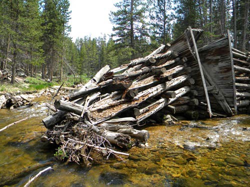One of the cool things about living in northern New England is that we’re privy to a whole host of circumboreal plant species – plants that exist above a certain latitude all around the globe. It was wildflower season in the Bighorns, and sure enough it looked just like the White Mountains (or an alpine area in Norway, or Russia.) Many of the alpine flowers we highlighted in our summer issue were in full bloom. The trees were almost all conifers – huge stands of lodgepole pine, then some pretty spruce/fir stands that wouldn’t look out of place here (though out there it’s Engelmann spruce and Douglas fir.) Because it’s so dry, wood doesn’t rot, so a lot of the relics of the old lumber days persist. Below find a picture of a splash dam in one of the Tongue River tributaries that was part of a logging job in the late 1800s. They were sending logs and pre-cut railroad ties to Dayton, Wyoming.