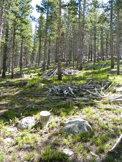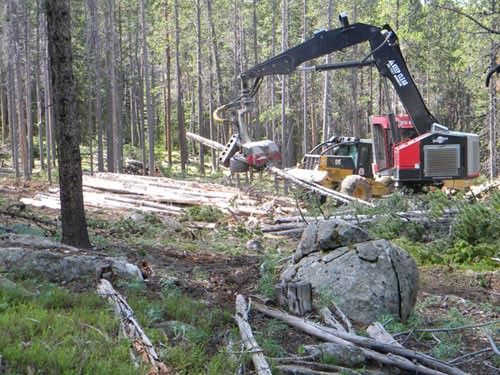 The forest wants to burn out there, and there’s evidence of fire everywhere. I know nothing about western silviculture, but it seems like the only areas in which I saw lodgepole pine regenerating naturally was where the earth had been heavily disturbed. Probably the duff layer has to get burned (or destroyed by a machine) for a seed to germinate. We saw one logging job where the contractor was doing a fire suppression thinning for the forest service. They were using beautiful equipment – a feller buncher, a CTL harvester, a grapple skidder, and an excavator – and selectively cutting little pine pecker poles just to thin the forest. I have no idea how the economics of that worked, other than the fact that they were working for the federal government, who I guess is thinking what’s $1 million in prevention in the face of potentially $1 billion in fire damage? Search out varying perspectives on western fire suppression online and you’ll find ecologists (and economists) who disagree with this logic.