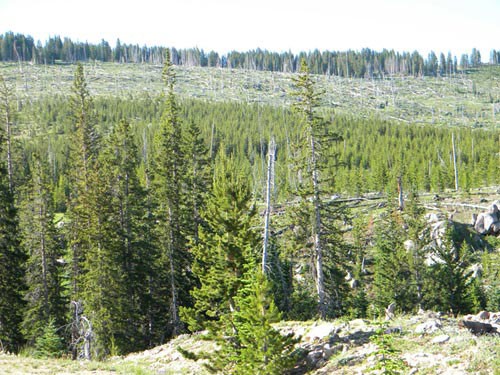 Sixty-six percent of the landscape in the Bighorns is forest and 34 percent is alpine meadow or water. There are clear lines between forest and field, unlike in the Northeast, where the forest would take over everything if we let it. I don’t know why this is. While we saw moose, elk, mule deer, whitetails, and cattle browsing, it doesn’t seem like herbivory is the answer. Maybe snow? Wind patterns?