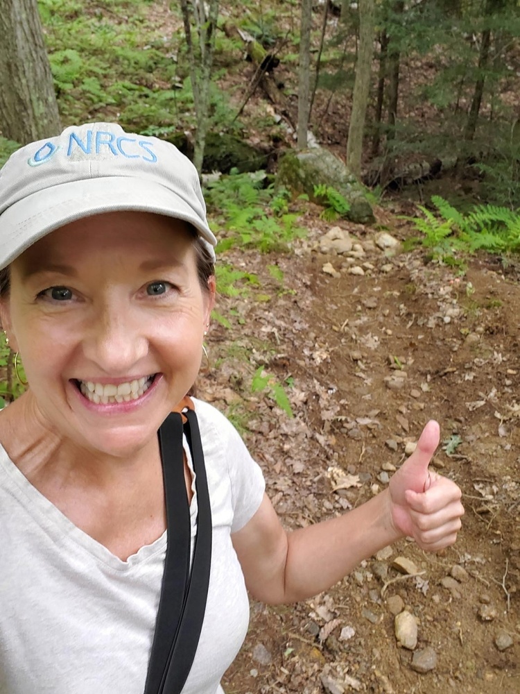 After my girls went to school, I was looking for work to do, and one of my friends suggested I go to the Cheshire County Conservation District, where NRCS is based. They were looking for people who had skills beyond agronomy and engineering. I started as a volunteer, and within a few months, they found me a temporary, year-long position as a “biological science technician.” I helped with land surveys. I also would do wildlife site visits with landowners, just technical assistance, nothing with contracts. I’d walk with them for a few hours observing things, offering some suggestions. Within two years, I was hired into a full-time job there, and I’ve been in that office ever since.