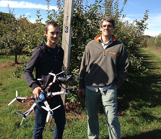 And it’s not just apple scab that could be detected. The UNH scientist said that small multispectral cameras mounted onto drones could potentially be used to detect water stress, nutrient deficiencies, and a wide variety of other problems. “We could map an entire forest in fine detail to determine the percent of trees that are affected,” he said. “Everything you can do with satellites and planes can now be done with unmanned aerial vehicles with higher resolution.”