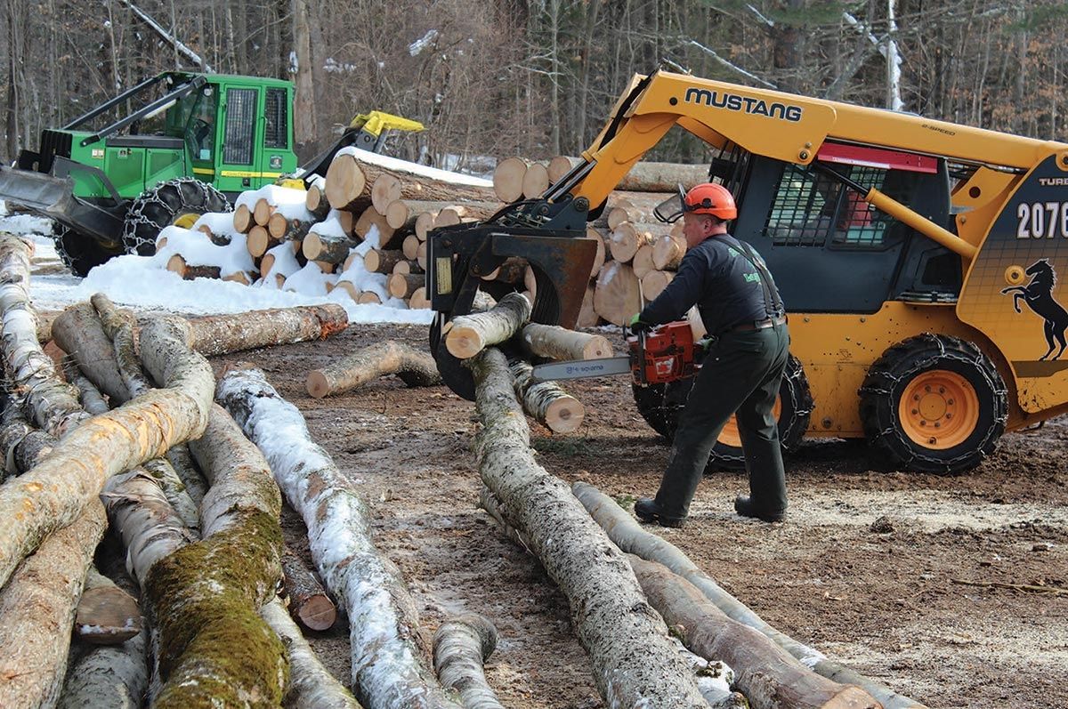 Seeing the brothers work together on the landing is like watching a well-choreographed dance routine. Using occasional hand signals, but mostly just the nod of his head, David directs Bruce as they work in near-perfect unison. Manning the skid steer, Bruce moves the sawn-out products to multiple neatly stacked piles on the sides of the landing and seems to anticipate exactly what David will do next as he measures and saws. With the smell of freshly cut wood in the air and sawdust flying, they work unbelievably fast and with intensity, yet without seeming to be in a hurry. A day’s worth of skidding is processed and sorted in half an hour.