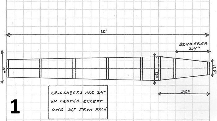 The finished toboggan [1] will be around 12 feet long and 13 inches wide at the shoulder, or widest point. Two planks will be required for construction, each plank about 7 inches wide. And it doesn’t hurt to prepare a third plank in case of breakage. So while you’re choosing wood, make sure that you will have enough material.
