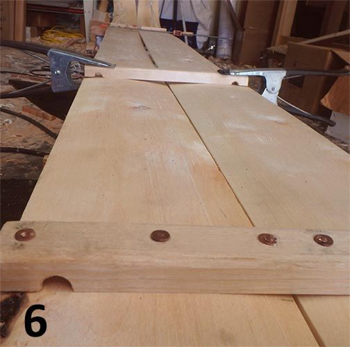 With your planks planed, find the two straightest edges and butt them up to one another. If large gaps are present, you may have to straighten the edges with a hand plane. The widest point of the toboggan (the shoulder) will be about 36 inches back from the prow.