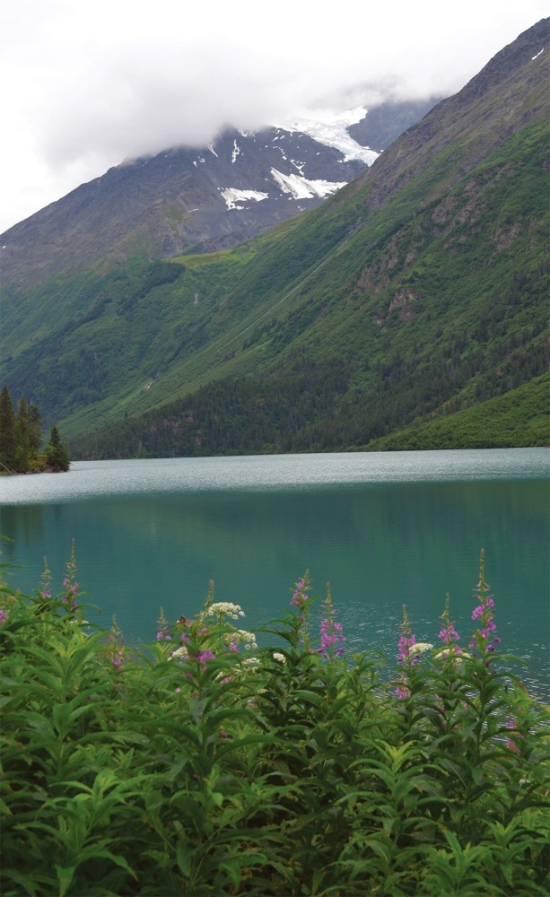 After stocking up on groceries, we headed south toward the Kenai, driving along the spectacular Turnagain Arm of the Cook Inlet, so named because Captain Cook’s ship had to turn around in a futile attempt to find a transcontinental passage. After rounding the end of the Arm, we crossed onto the Kenai Peninsula and entered the Chugach National Forest, America’s northernmost, westernmost, and second-largest national forest. The Chugach covers 5.4 million acres, roughly the size of New Hampshire, and includes lands along Prince William Sound and the Copper River Delta to the east in addition to the eastern Kenai Peninsula. It spans a transition zone between boreal forest and coastal temperate rain forest. Over 25 percent of the forest is covered with snow and ice year round.