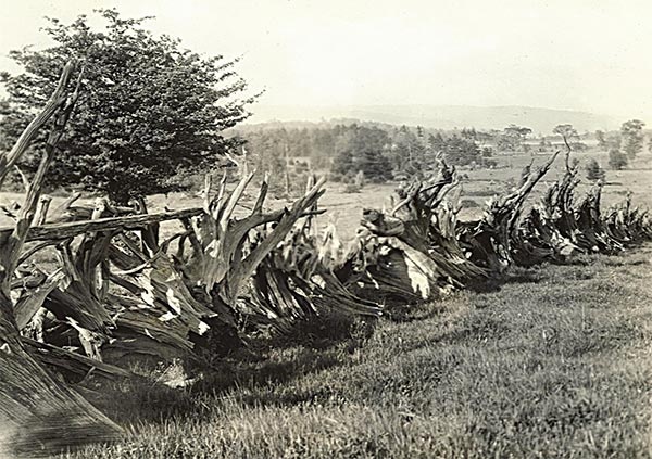 Others had a more favorable view of this unique rural architecture. In 1869, travel writer J. T. Trowbridge noted, “a picturesque feature of the country which has not been often enough described [is] the root-fence. I am not aware that justice has ever been done to these by pen or pencil. What astonishing stereoscopic views they would make!”