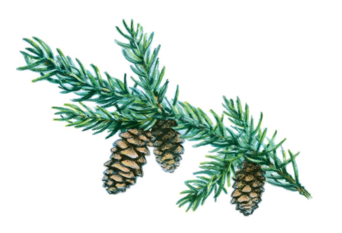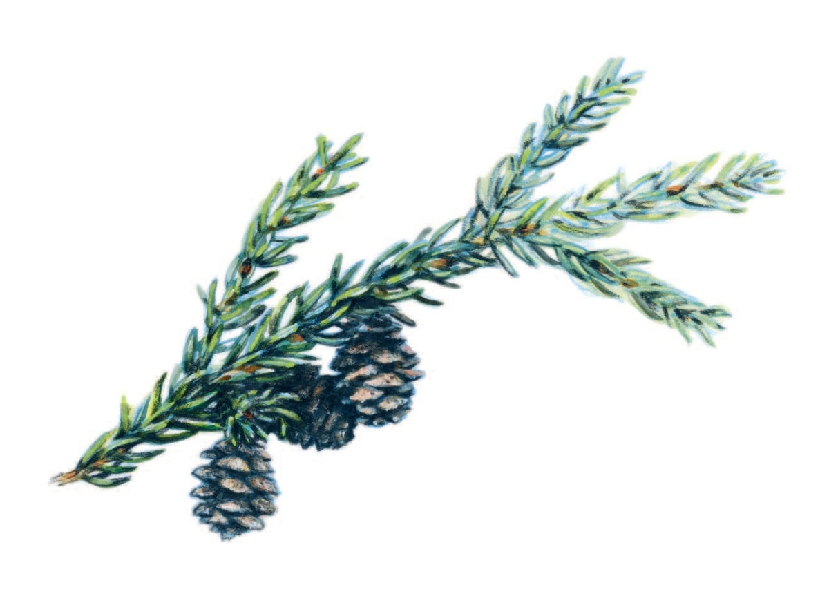 The specific epithet glauca is derived from the Latin word glaucus, from which we get the word “glaucous.” Botanists use this term to refer to a bloom: a waxy or powdery coating on a plant surface that gives it a grayish, whitish, or bluish hue. In the case of white spruce, the term applies to the bloom on the surface of the needles, which make them appear pale.