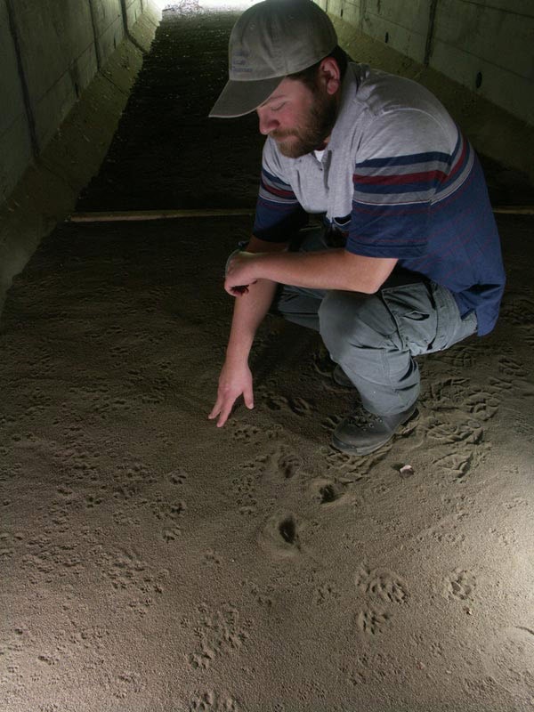 Crossing a four-lane highway that sees 50,000 vehicles a day can be a daunting task for an animal. So a group of organizations and individuals in Concord, Massachusetts, teamed up with MassHighway to install wildlife-friendly box culverts under a suburban stretch of Route 2. Since the project’s completion in 2005, the Wildlife Passages Task Force, an eight-person volunteer group of citizen scientists, have monitored the tunnels with motion- and heat-sensitive cameras and a tracking bed.