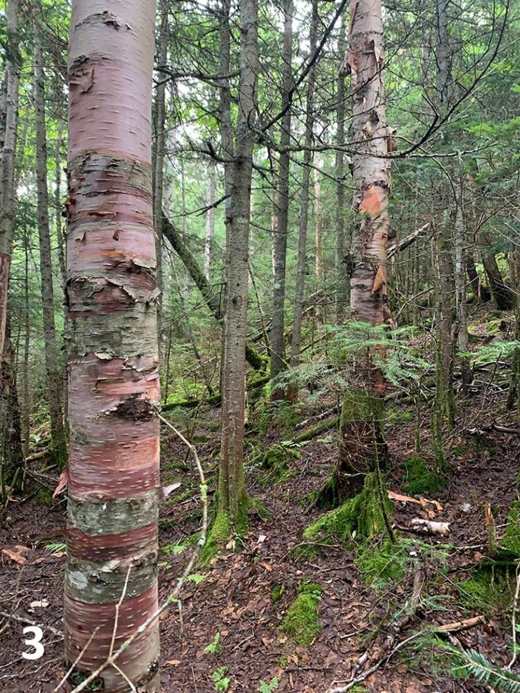 If you want to find heartleaf birch, a good place to look is subalpine habitat. “Although heartleaf is not strictly a high-elevation mountain species,” writes Grima, “any peak bagger in the Northeast has likely encountered this tree.” In Photo Three, young red spruce and balsam fir fill in beneath a mature stand of heartleaf birch. The dark red bark of the tree in the center of the photo is characteristic of the species, but not reliably so.