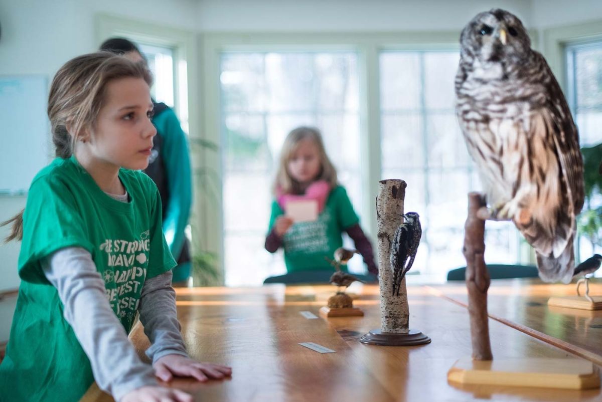 When brought into a classroom, however, taxidermy can create an intimate connection. Harris Center naturalists most often use mounted specimens in lessons on wildlife adaptations, where children can examine how the structure of an animal’s body reflects its behavior and habitat. Taxidermy also allows students to look closely, in three dimensions – something that’s impossible to replicate through photos, videos, or even observing live animals.