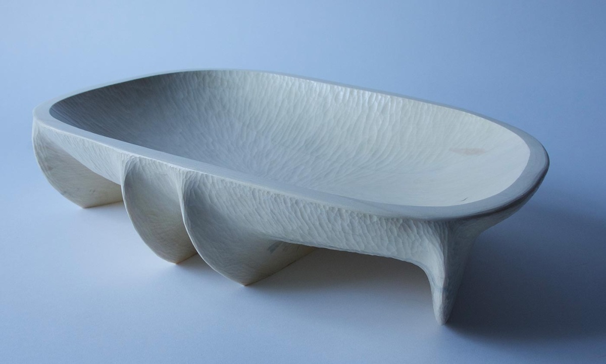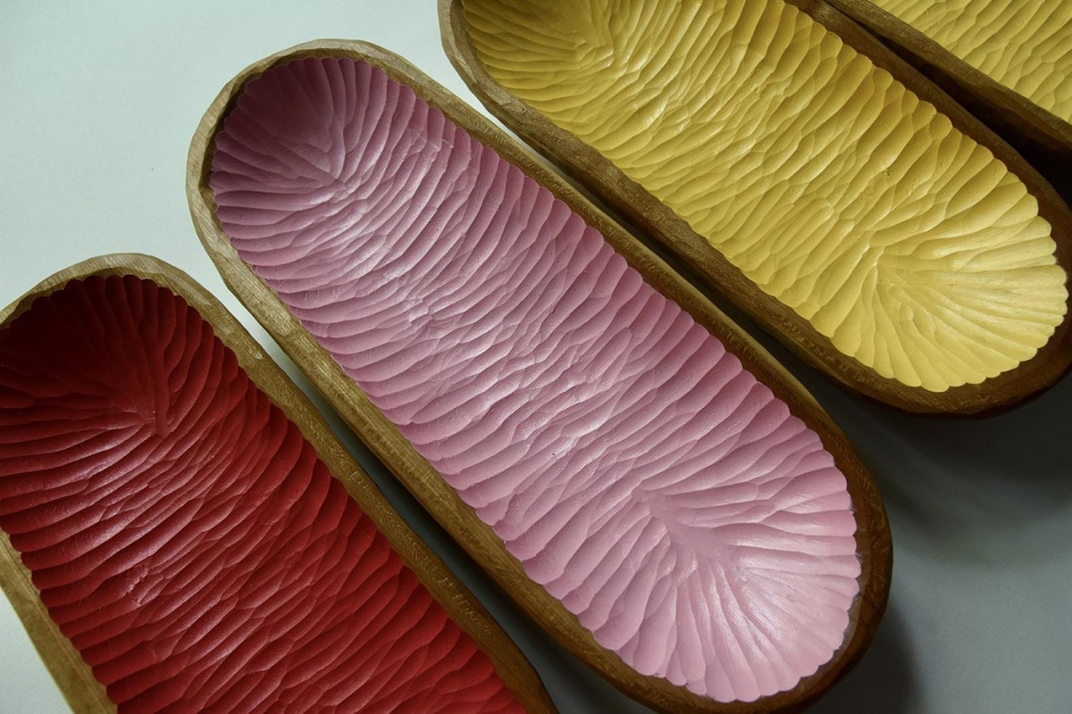 Her carved bowls are unique, full of life, and very much in demand by collectors. It’s easy to see why; the pieces are functional works of art. Some have all-natural finishes, while others are painted with vibrant oil paints in rich colors such as golden sunlight, blue skies, pink berries, or charcoal black. Byrd finishes the interior of each piece naturally, using food-safe pure tung oil.