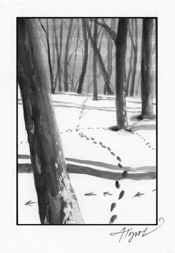 Lest you think we’re crazy, here’s why: our forest has been transformed. Where once, five years ago, we used to see only occasional deer and turkey tracks, we now see so many tracks that we need to bring a field guide. (The sledding tracks of otter are this winter’s prize find.) Where once the forest looked crowded and crooked, we now see towering pines and spreading oaks. And where there used to be a sparse understory of spindly stems, we now have an amazing fuzz of sprouting white pines, a four-foot-tall shag rug of green saplings.