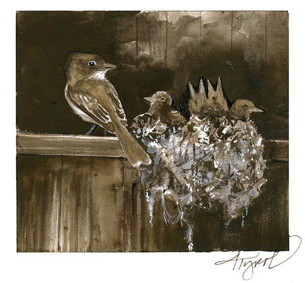 While winter in New England can be stunningly beautiful, with its magical snowfalls and ethereal silences, I must admit that by mid-February the long absence of so many songbirds has me feeling bereft. I miss the vireos; I miss the thrushes and most especially I miss the pair of phoebes who settle into the well-worn nest on the gable end of my house to raise their young.