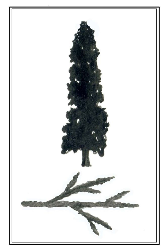 A riot of young cedar saplings can appear to sprout straight from water or bedrock. Branches form low on the trunk. A branch that touches the ground will sprout a new tree. Other branches curve upwards in a tangle of feathery foliage, light green taking on a yellowish tinge with age. A mature tree has a rounded conical shape. Flat sprays of scale-like leaves reveal its membership in the cypress family and contain the Vitamin C that may have inspired the alias “arborvitae,” which means “tree of life.” Sipping cedar tea can clear the respiratory system and was a traditional drink to ward off scurvy. Northern white-cedar is known for healing wounds, recovering nerve damage, boosting immunity, calming the psyche.
