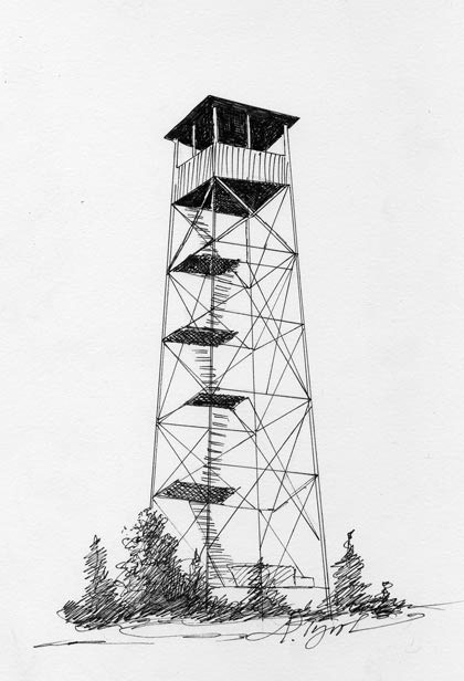 At one time, New Hampshire had 91 fire towers. The first publicly funded tower in the state was built on the north summit of Kearsarge Mountain in 1903, although some accounts claim that Croydon Peak’s fire tower may have been even earlier. Vermont had 35 towers on its peaks at one point, the first of which was built with private funds on Burke Mountain in 1913. The Vermont state forester felt strongly enough about fire protection to champion a law that took effect in 1910 under which the state built towers – and staffed them – on private land at public expense.