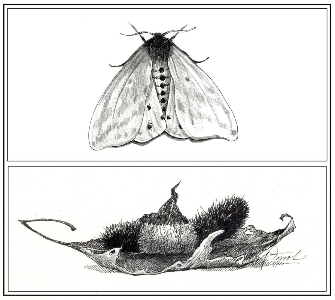 All that cuteness, however, belies a certain toughness. These small wanderers don’t fly south as adults or overwinter as pupae like many other moth species. Instead they spend their winters as caterpillars, mostly frozen, tucked away beneath leaves or in some sheltered nook.