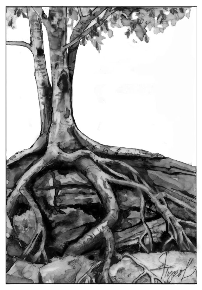 One summer, I took a nature drawing class, and we hiked up Vermont’s Stowe Pinnacle to sketch in the cool, mountain forest. I chose to draw a big yellow birch that had established itself on the steep slope. For a couple of hours, I stared at the base of the tree, trying to capture its intricate detail: the way the trunk leaned to the right and its large, supporting roots spread over the ground; the variable colors, patterns, and textures of its bark; a hole at the base that might be home to a mouse or chipmunk. I wondered how old the tree was and what it had witnessed in its lifetime from its perch on the mountainside.