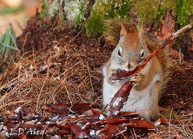 Your April photos showed the forest in transition, from a snowshoe hare shedding its white coat to red maple buds opening in the sun. Fox kits played and an eastern comma butterfly emerged from its winter quarters under tree bark. Speaking of emergence – of a less happy kind – in New York, foresters assessed ash trees for a harvest with emerald ash borers in mind.